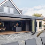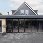 Met vijf kinderen waren de huiseigenaren toe aan een extra leefruimte. Deze zou het hart van de woning moeten worden. Een plek waar tot in de late avonduren gezellig getafeld kan worden, maar ook een plek die in de zomer betrokken kan worden bij de tuin. Daarom werd aan de gehele achterzijde van de woning een zesdelige vouwwand geplaatst. Deze wand zorgt ervoor dat de gehele benedenverdieping natuurlijk verlicht kan worden. In de warme maanden kan de vouwwand in zijn geheel opengeschoven worden waardoor binnen en buiten één is. Doordat er drie delen naar links en drie delen naar rechts gevouwen kunnen worden, ontstaat er een loopdeur in het midden. Dit maakt het in- en uitlopen extra gemakkelijk.
