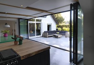 Een glazen vouwwand biedt eindeloze mogelijkheden in afmetingen, maar ook in materiaal. U kunt kiezen uit aluminium of een combinatie van hout en aluminium. Een glazen vouwwand zorgt altijd voor meer lichtinval en een geweldig gevoel van ruimte en vrijheid.