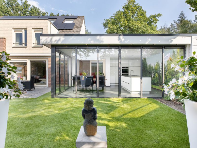 Aanbouw met minimalistisch schuifsysteem in Naarden, Noord-Holland