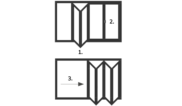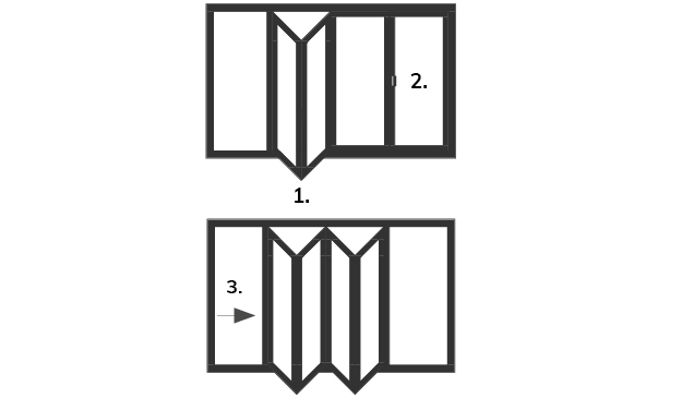 - Hierna worden alle deurensets geopend en licht gevouwen.